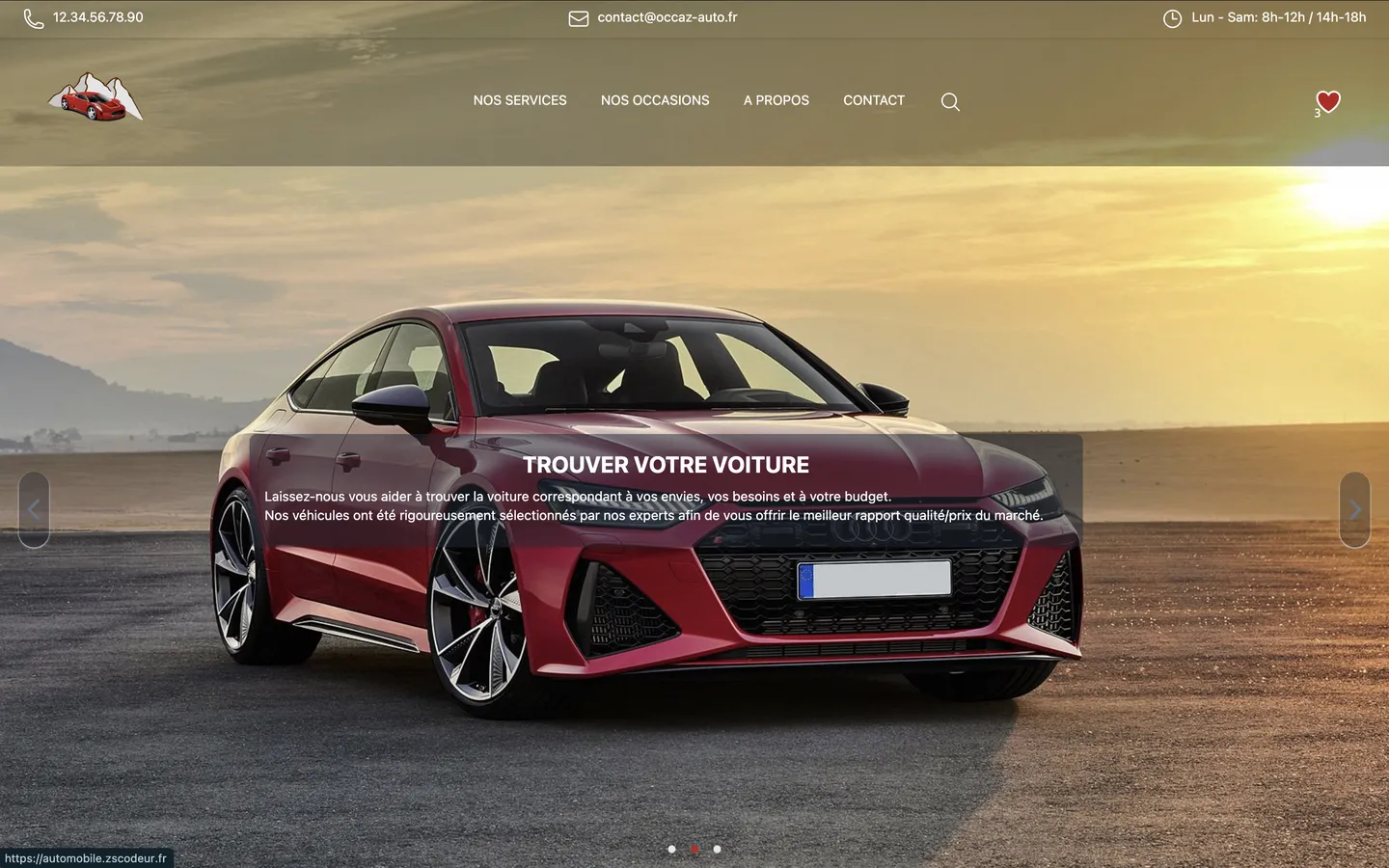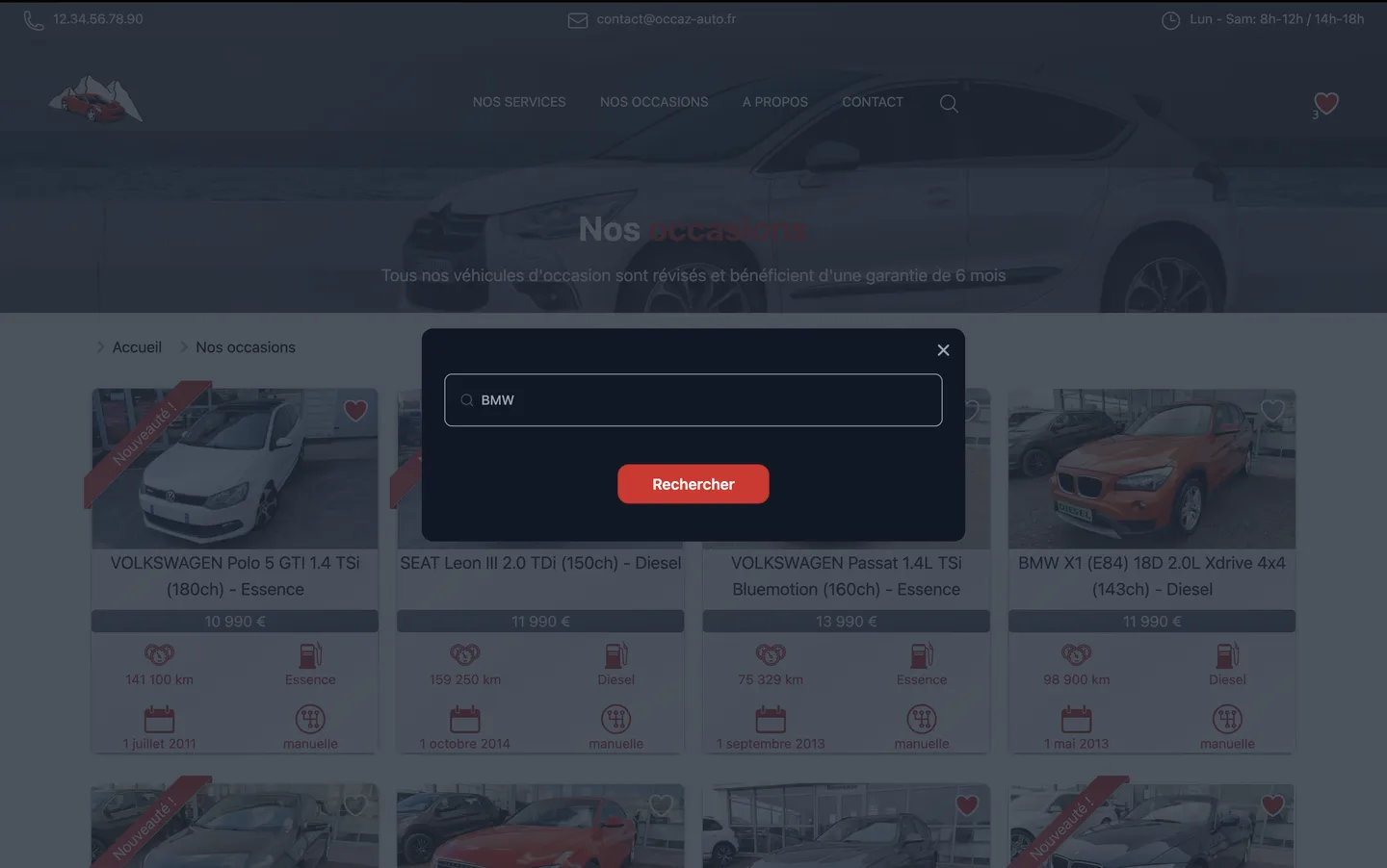 ✅ Catalogue des véhicules d'occasion avec champs de recherche.