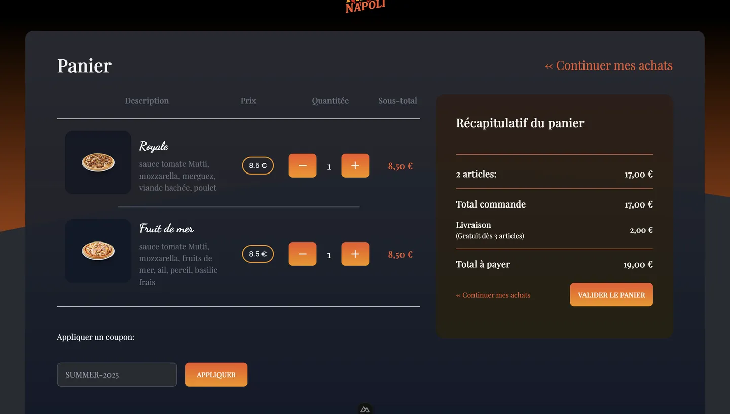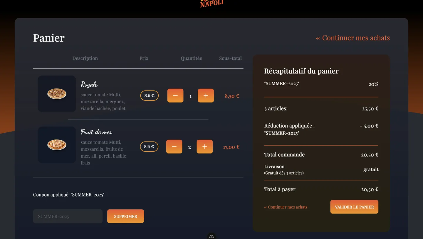✅ Gestion du panier, des coupons de réduction et des commandes.