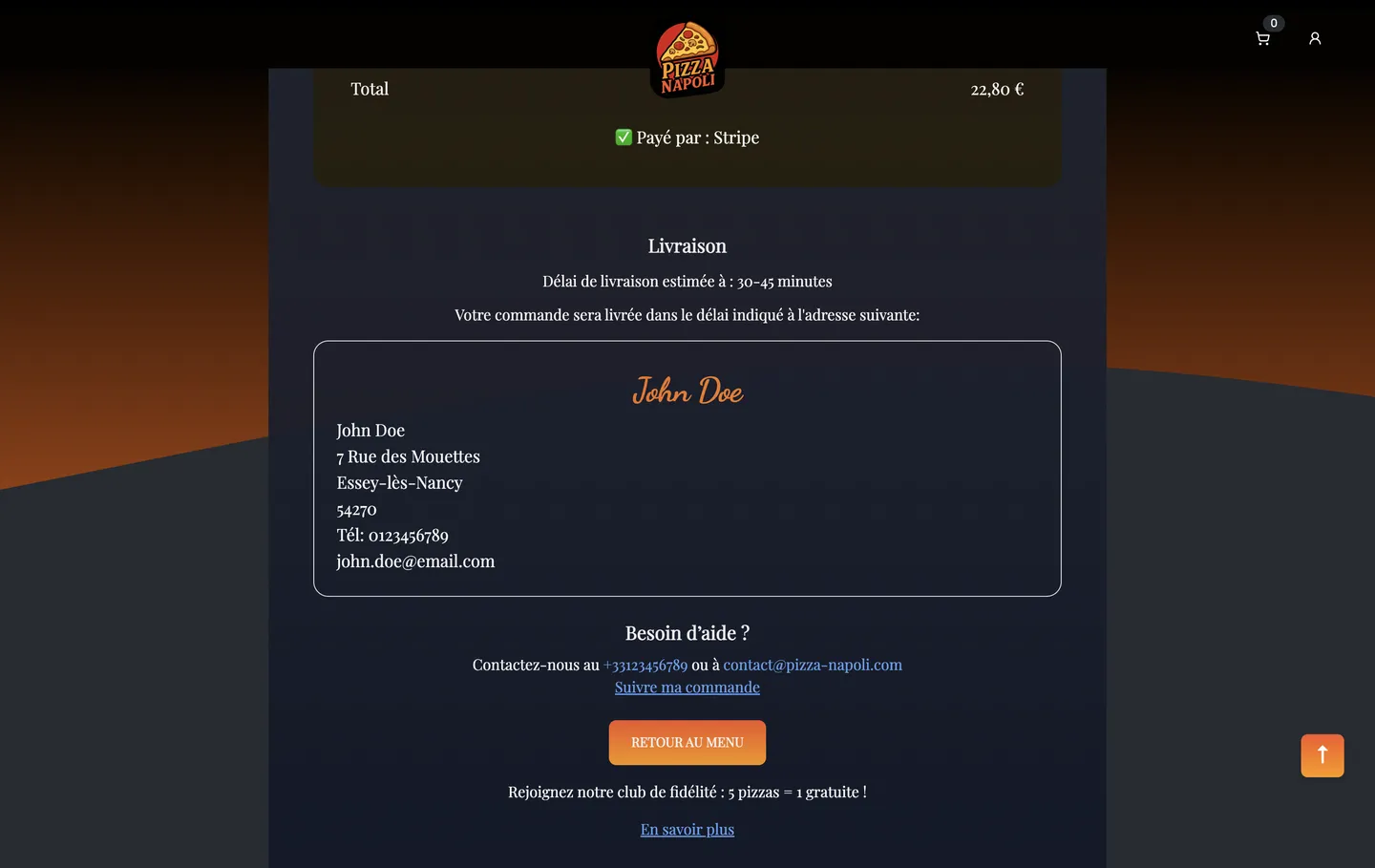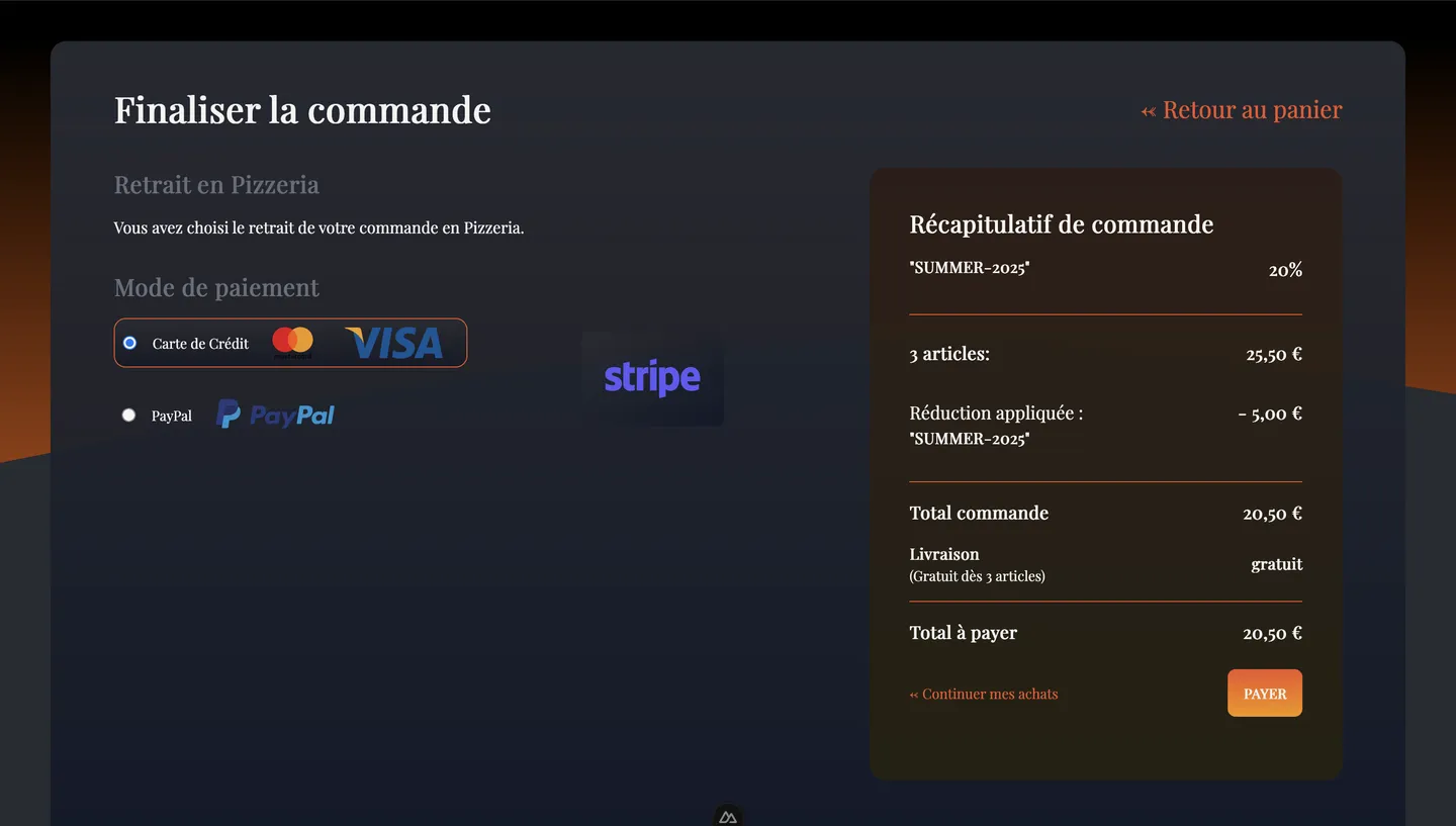 ✅ Système de paiement via carte de crédit (Stripe) et PayPal.